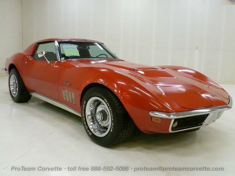 1012Q..1969 Corvette T-Top, 427-435 hp, 4 speed numbers matching original engine, 88,878 actual miles. Monza Red paint with Black deluxe interior. Mostly original unrestored paint, interior, chrome and smog system showing aging you'd expect for a 53 year old car. NO HIT original body with rust-free California frame and undercarriage. This is a true survivor by definition! Also has an affirmation by CCAS/Grenning as to the legitimacy and originality of the engine block, stamp pad, and the engine stamp. Optioned with power steering, power brakes, power windows, leather, tilt-n-telescopic, headrests, shoulder harness, transistorized ignition, M-21, 3.70 posi, SS brakes, A.I.R., AM/FM radio, tri-power, side louver trim, tinted glass, tinted windshield, rallys, and raised white lettered radials. Most all factory correct type components including the spare, T-Top bags, seat belts, washer system, smog system, shifter, shielding, braided wires, air cleaner, 207 coil, distributor, window glass, valve covers, expansion tank, gas door assembly, owners manual, sales brochure, and T-3 headlights. Documented with CCAS/Grenning Engine Stamp Affirmation. Production date of approximately November 23rd, 1968 and Delivered new by Harry Mann Chevrolet in Los Angeles, CA (dealer code 307 in zone 20) per the official NCRS/GM Shipping Data Records (SDR). This is not a car for someone who wants strong cosmetics but indeed a car for someone who appreciates originality. Looks, runs, and drives very nice. CC:+3 $85,000.00