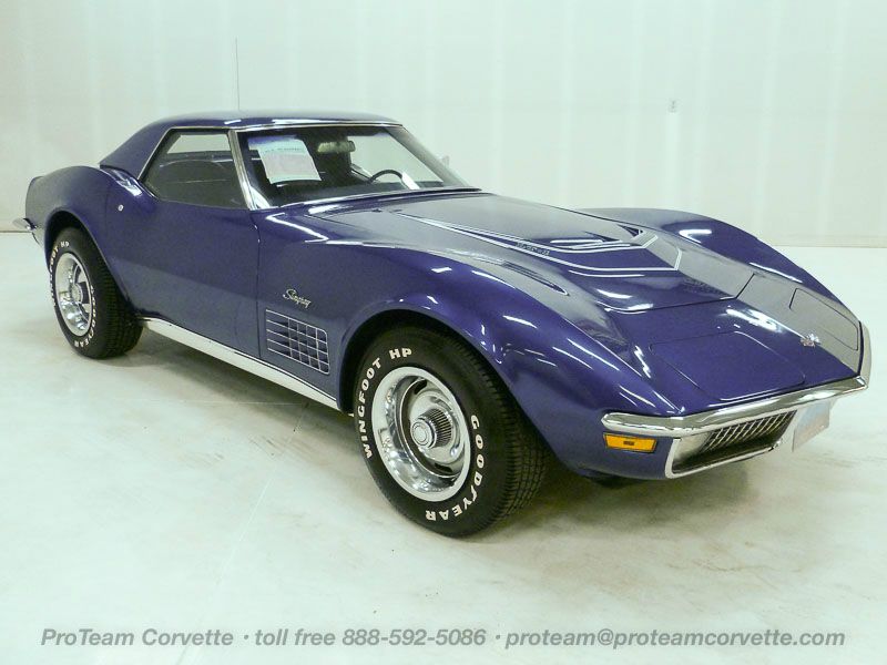 1016T..1972 Corvette Benchmark 4-Star Bowtie Time-Capsule T-Top, 350 turbo hydra-matic transmission, numbers matching original motor, transmission and rear end, also has factory original body/trim tag, 8,925 actual miles. Bryar Blue paint with Black interior. Original, unmolested, unrestored and in excellent low-mile condition. Bloomington Gold Benchmark award (2018), Survivor award (2018), Gold certified OEM (2018), NCRS Top Flight (2017), NCRS Regional Top Flight 98.9% (2022), NCRS National 4-Star Bowtie award (2022), MCACN Concours Gold (2022), MCACN Triple Diamond (2022), MCACN Concours Gold (2018), MCACN Triple Diamond (2018) and MCACN year of the 1972 Display (2022) which is amazing considering this car is original and unrestored including it's original tires and exhaust. This car is one of the elite few recipients of America’s most prestigious Corvette awards, the happy result of a lifetime of diligent care and discerning use. Unrestored and original!! It was judged worthy of Bloomington Gold Certification, Survivor and Benchmark honors, the latter being the most important of all to the demanding collector. Benchmark Certification recognizes each recipient as not only unrestored—a quality recognized in Survivor judging—but also that it remains in showroom condition, exactly as it was upon delivery from the factory with the exception of aging. These qualities make it the perfect source of reference for a top-quality restoration of a like car, ergo the term “Benchmark.” Benchmark Certification is only awarded to cars that have achieved both Gold and Survivor on the same weekend, qualify in all four Survivor categories. Benchmark is, by definition, the most important distinction in the entire Corvette judging regime, one awarded to fewer than 250 Corvettes 1953 to 1972. These original unmolested cars are among the rarest of rare and are rising to the top of the Corvette food chain as unrestored cars are used as guideposts for restorers, shining a light on the way vehicles were originally built and represent the standards which historians, judges, and future restorers can use to determine factory authenticity. The solid feel of an excellent unrestored car cannot be overstated!… This is a great car for a purist connoisseur. Also has an affirmation by CCAS/Grenning as to the legitimacy and originality of the engine block, stamp pad, and the engine stamp. Optioned with factory air conditioning, power steering, power brakes, 3.08 posi, AM/FM radio, audio alarm, tinted glass, rally wheels and original date coded Firestone Super Sport white stripe tires. Most all factory correct type components including the spare, jack, jack tools, floor mats, T-Top bags, shocks, seat belts, washer system, shifter, shielding, air cleaner, alternator, distributor, spark plug shields, hoses, hose clamps, window glass, valve covers, starter, #2202 carb, ball joints, radiator, gas door assembly, warranty book, owners manual, sales brochure, and T-3 headlights. Documented with almost all factory and dealer paperwork including the window sticker, judging awards, CCAS/Grenning Engine Stamp Affirmation, owner history, photos, correspondence and multiple 3-ring binders. In fact there is so much that it takes two large file boxes!! This car has had a lifetime of diligent care and discerning use and maintenance to be as nice and original as it is. Production date of May 9th, 1972 and delivered new by Hawkeye Motor Company in Burlington, IA (dealer code 279 in zone 47) per the official NCRS/GM Shipping Data Records (SDR). Looks, runs, and drives excellent and is a treasure to see and drive like it is 1972 all over again. CC:1 $89,250.00 terry@proteamcorvette.com